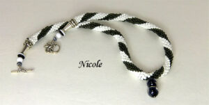 S’il est vrai qu’on s’habille pour impressionner, il ne faut pas oublier ce magnifique collier, qui saura attirer tous les regards. Il est composé de perles noir transparent avec insertion de perles blanches et le pendentif qui est de perles noires transparentes.