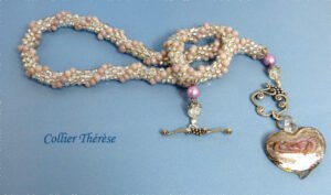 Il est fait de perles de verre transparentes avec insertion de perles rose.